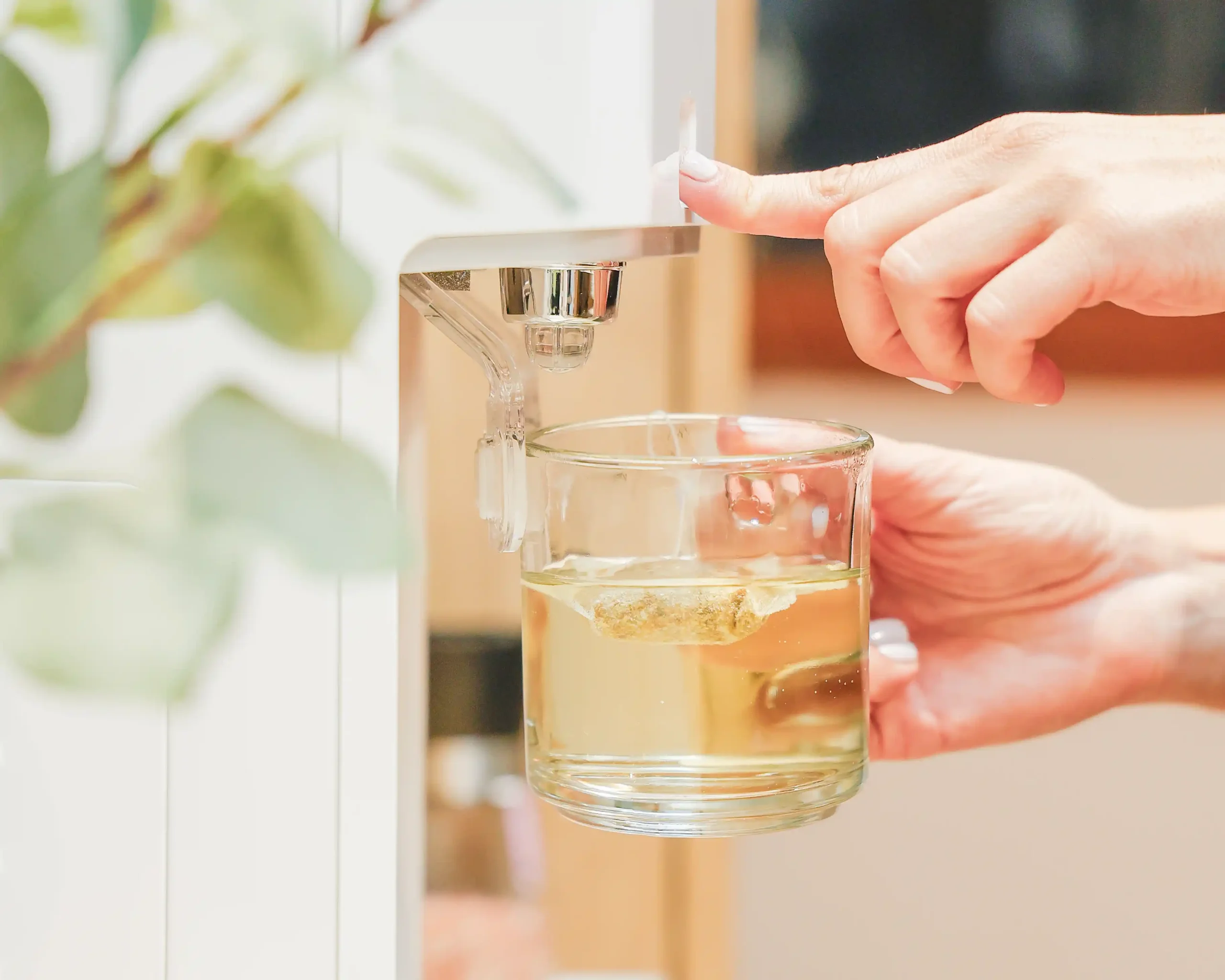 Dispensador que entrega agua caliente o agua fría al instante.